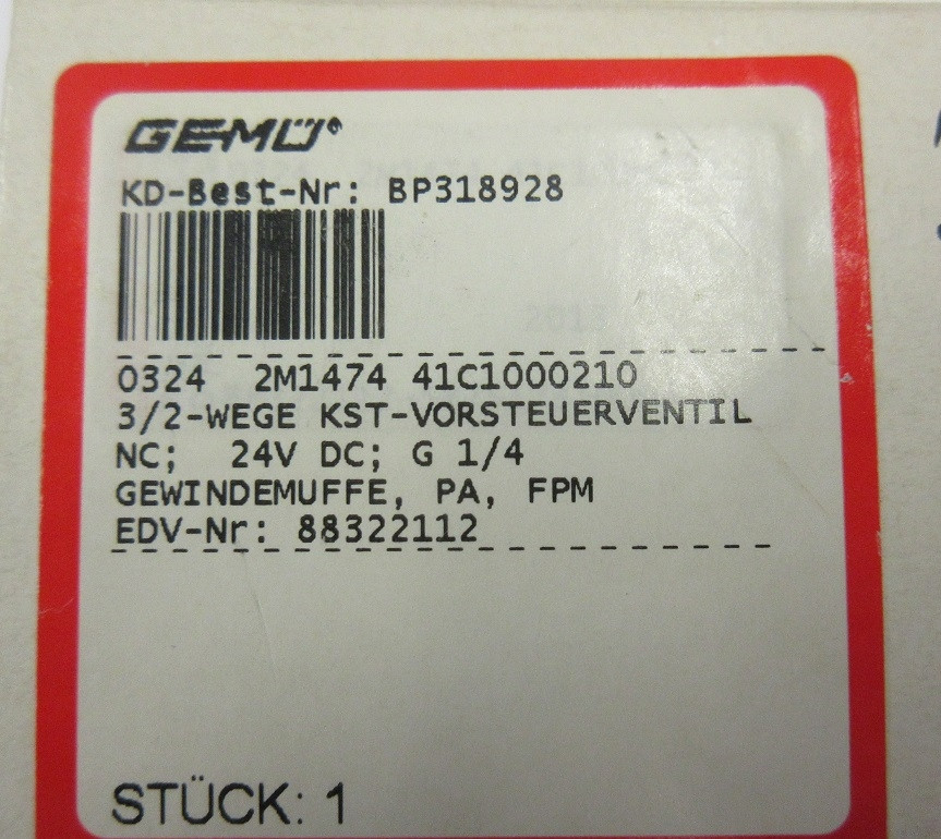 Gemü Vorsteuerventil Typ 324, NC 24V DC, DN1,8 4,8W 0-10bar