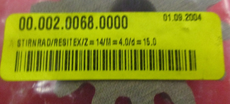 Stirnrad - Resitex - d= 15 D=63 M= 4,0 Z=14 Schmid No: 00.002.0068.0000